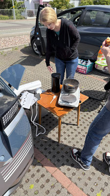 Gestartet sind wir am Samstag, den 5.10. 2024 in Hünfeld mit einer kleinen Brotzeit mit warmen Würstchen und heißem Kaffee via „Vehicle to Load“-Adapter eines MG4. Dann ging es ins Konrad-Zuse-Museum, wo wir die ersten deutschen Computer bestaunt haben. Anschließend gab es in der Wiesenmühle Fulda ein Abendessen und im Anschluss eine "Sternen-Stadtführung".